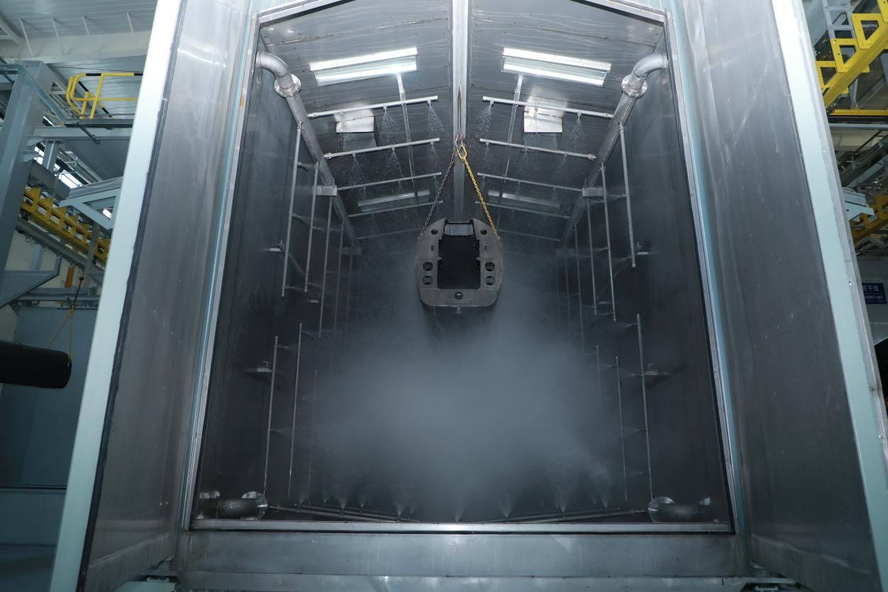 涂裝中心通過(guò)對(duì)標(biāo)國(guó)內(nèi)先進(jìn)裝備制造企業(yè),研判分析國(guó)家環(huán)保形勢(shì)、政策。以“機(jī)械化減人、智能化換人、智能化作業(yè)”為目標(biāo),以“設(shè)備、產(chǎn)線和產(chǎn)品自動(dòng)化、數(shù)字化、智能化、綠色化;業(yè)務(wù)流程數(shù)字化、信息化”原則建設(shè),打造為國(guó)內(nèi)一流的重型裝備制造業(yè)涂裝中心為目標(biāo)建設(shè),提升自動(dòng)化作業(yè)率,實(shí)現(xiàn)噴砂自動(dòng)化作業(yè)率≥96%,噴漆自動(dòng)化作業(yè)率≥92%,作業(yè)人員由160人優(yōu)化為80人。提升涂裝設(shè)備綠色化、智能化水平,采取先進(jìn)的噴粉、水性漆涂裝工藝,廢氣處理采用沸石轉(zhuǎn)輪+RTO處理工藝,達(dá)到廢氣污染防治要求,實(shí)現(xiàn)“超超低”排放要求。