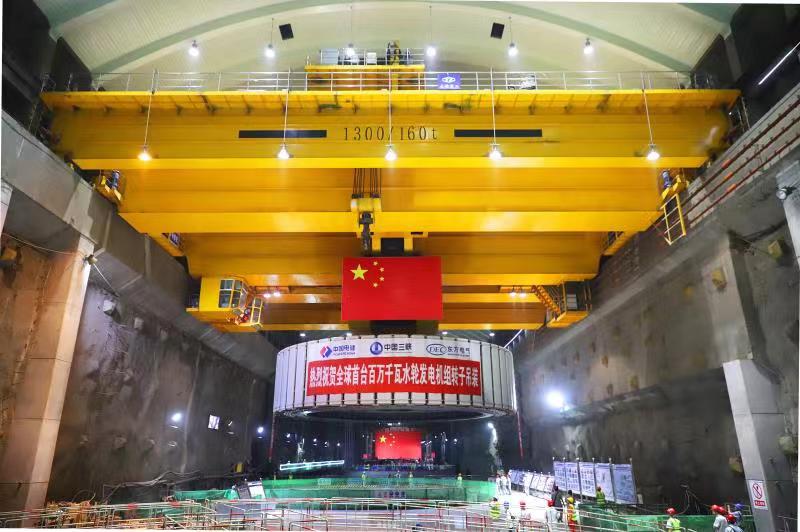 8月18日,三峽集團白鶴灘水電站左岸1號機組轉子在太重生產的兩臺1300噸橋機并車抬吊牽引下緩緩上升,拉開了世界首臺單機容量100萬千瓦水輪發(fā)電機組轉子吊裝的序幕。經過約300米的水平移動后,轉子安全平穩(wěn)落入1號機組機坑,實現(xiàn)了與發(fā)電機軸的精準對接。該轉子外圓直徑約16.2米,最大高度約4.1米,起吊重量達2100噸,是機組安裝過程中重量最大的核心部件。為了轉子等重要設備安裝、起吊過程的安全、穩(wěn)定,三峽集團選擇了長期合...