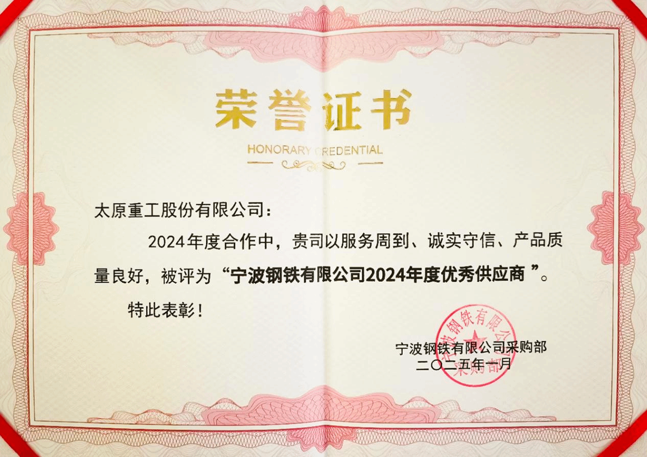 近日,憑借頂尖的技術(shù)實力、過硬的產(chǎn)品質(zhì)量、優(yōu)質(zhì)的用戶服務(wù),太重榮獲“寧波鋼鐵有限公司2024年度優(yōu)秀供應(yīng)商”稱號。值得一提的是,公司已連續(xù)四年獲得此項榮譽,成為用戶供應(yīng)商體系中的典范。